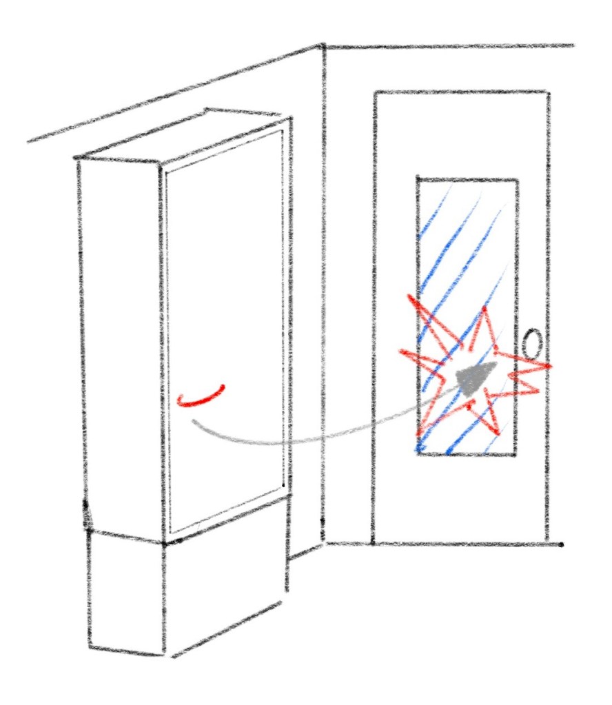 Some projects start with a problem. The problem I had here was that if I let go of the open fridge door for even a second, the metal handle would slam into the kitchen door’s glass panel. It would make this horrible sound and every time it happened I was afraid the glass would shatter.