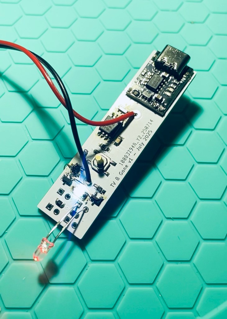 For context: A TV-B-Gone is a universal TV remote with one button and one function only: To turn off any TV.