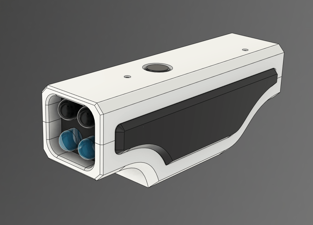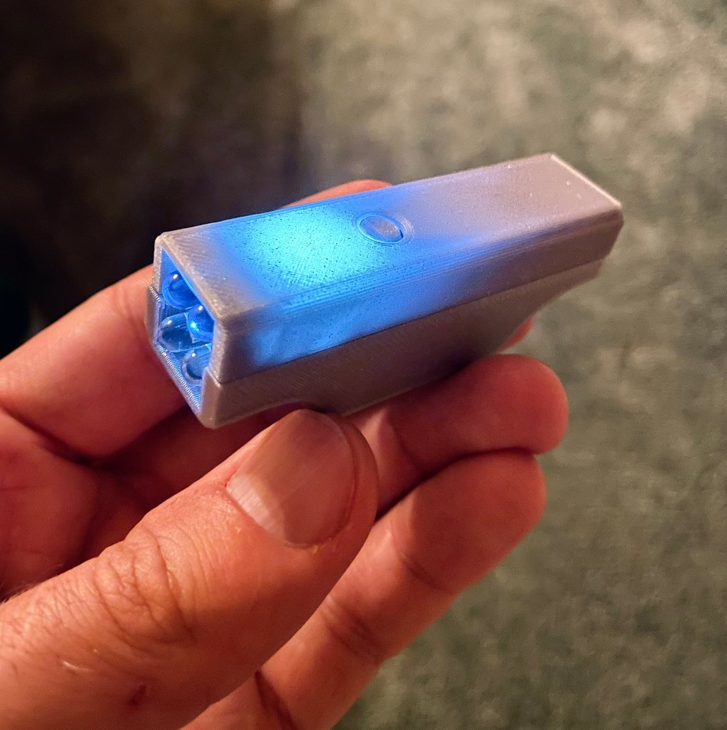 It was time to turn to the case design. I broke out the trusty Fusion 360 and got to work. It took a couple of iterations to get to a satisfying result. One thing I noticed was the brightness of the status LED was WAY too high. Not only did it show through the front of the device, it was even visible through the case. Stealth is different.