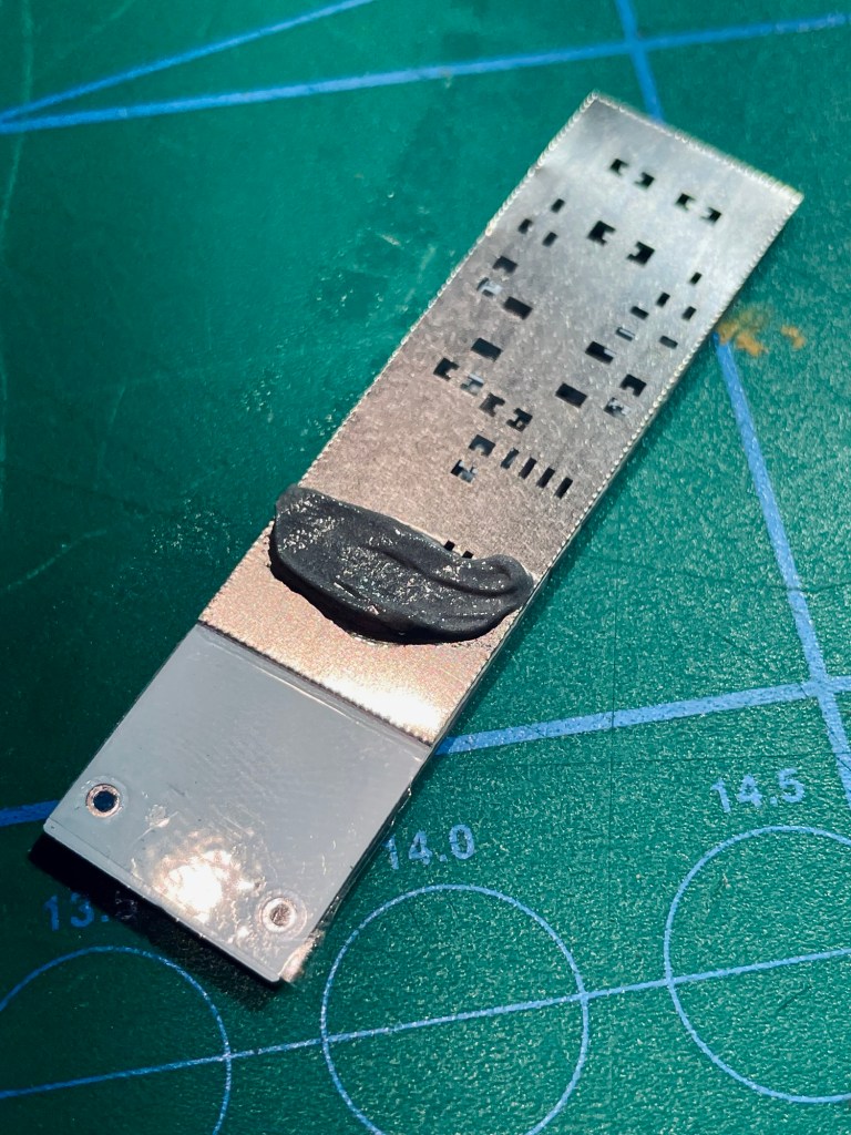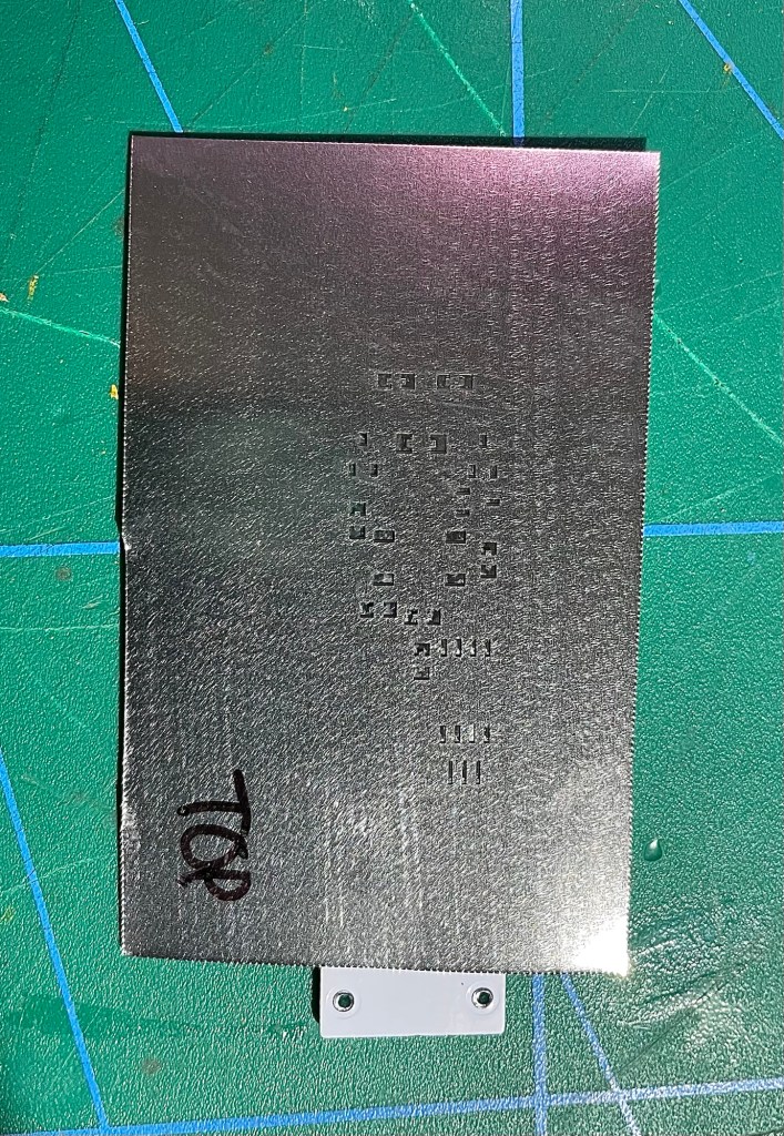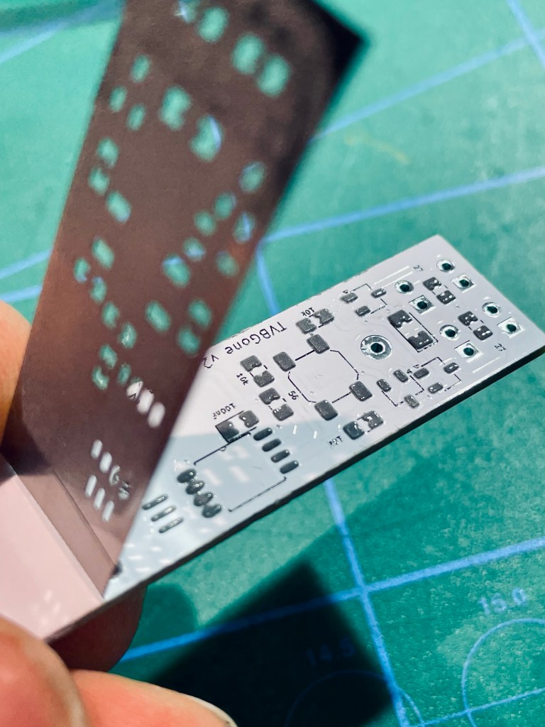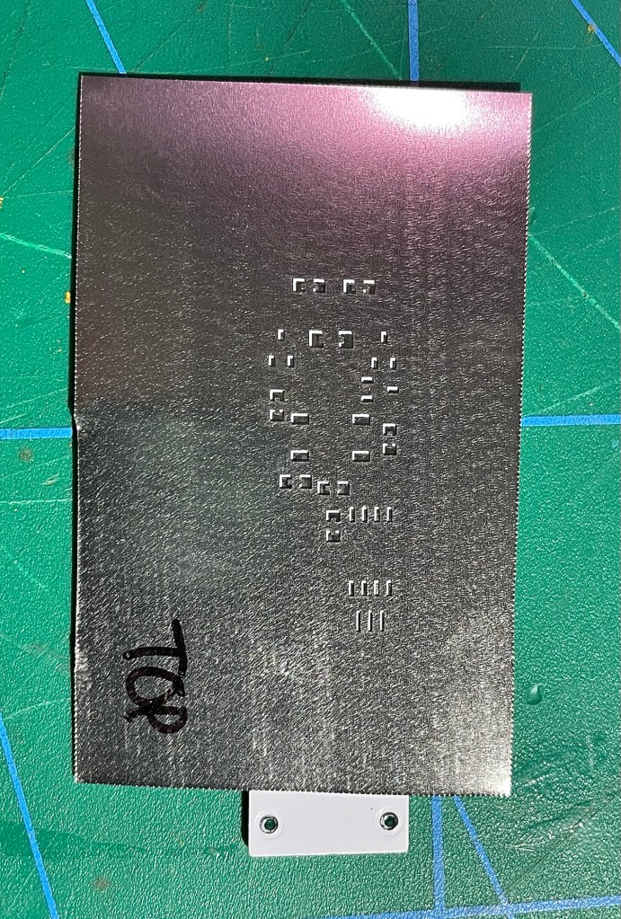 There was a funny surprise with the solder paste stencil. All the holes were in the right place and it was going to do its job, all fine there.