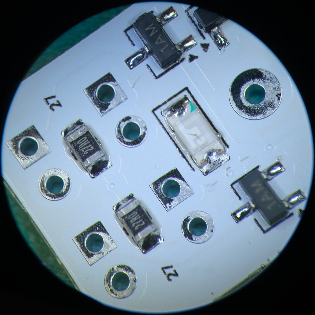 There were still a couple of components to be soldered by hand. Not too many, just the front LEDs, the underside components, the USB charging circuit and the battery cell. But multiplied by 10 made for some full work sessions.