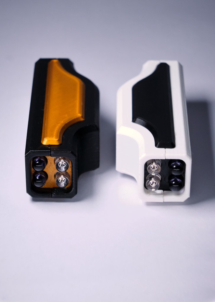 Still, I want to push myself to see projects to a clean end. Too many projects I have abandoned even at 90% completion. So I went once more back to the drawing board to solve the question of how to shut the case. It is as small as I could make it given the size of the circuit board. I did not want to make it any bigger with features for screws, snap latches or anything else. But those are all solutions allowing opening and closing of the case. Because of the built-in Li-ion cell and USB charging, there was no need to design it for access at all. I designed it to be glued shut.