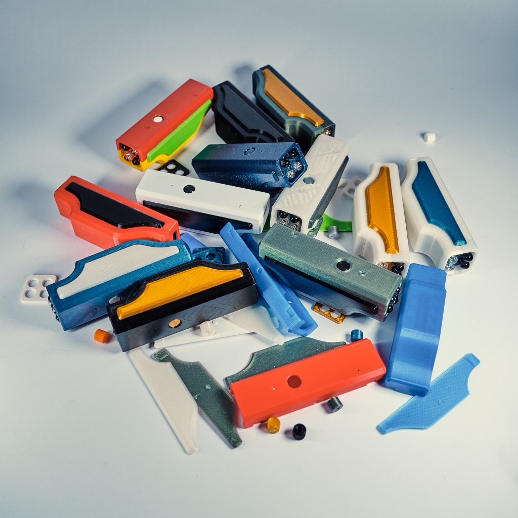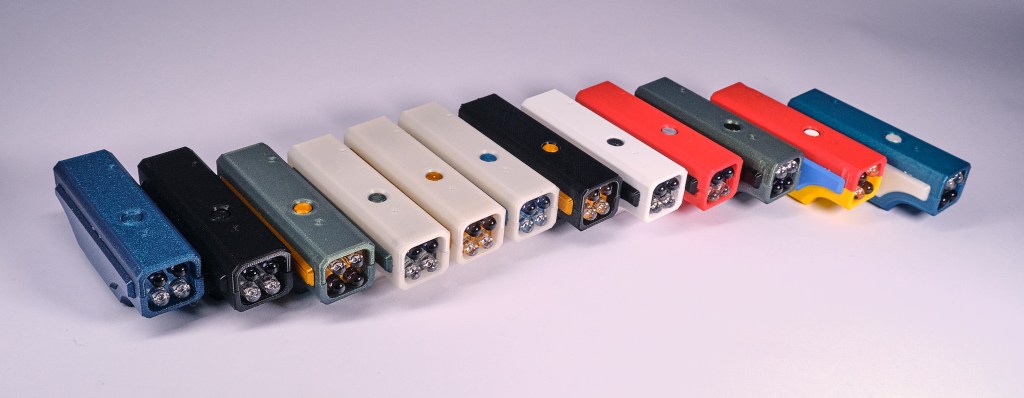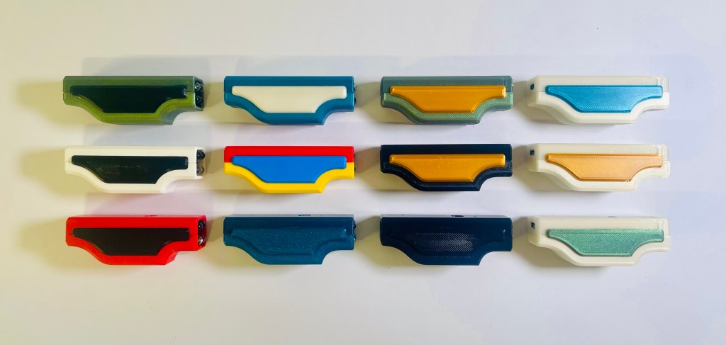As someone with a 3D printer, a core belief is that there is no such thing as „I have enough filament“. From the Gridfinity project I had five base colors, from regular everyday printing I had black, white, gray and some others. Still, this selection seemed a bit boring to make 10 unique cases. I got a couple spools of some fancier filament.