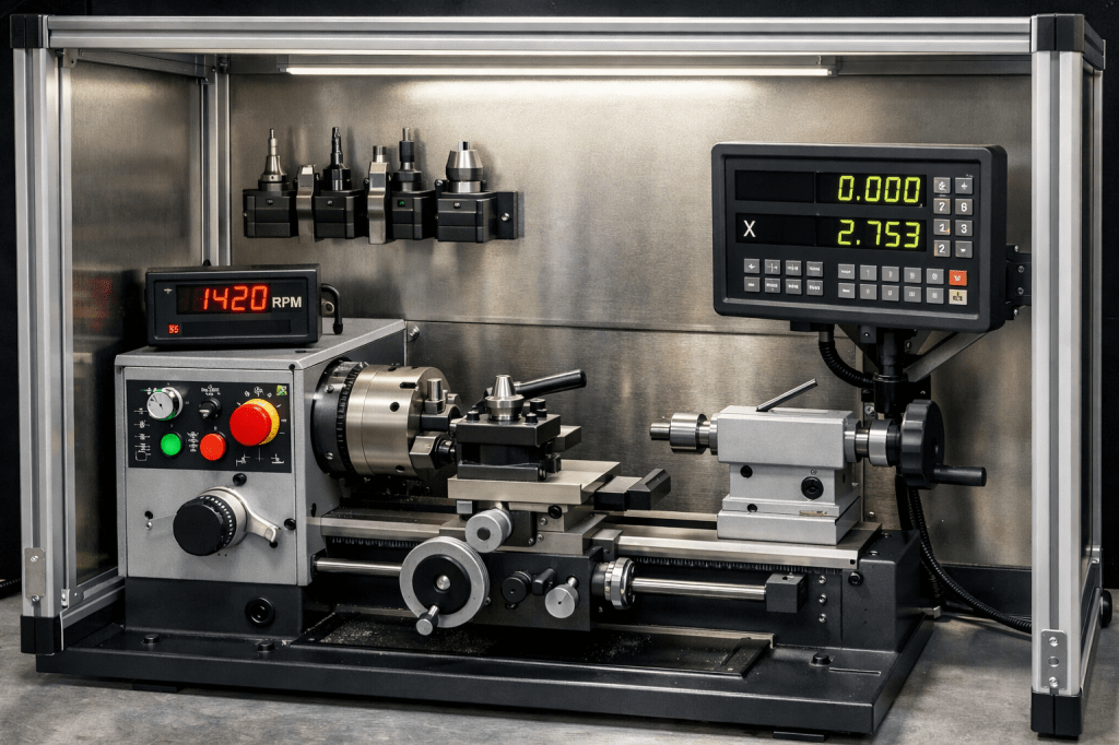 It finally happened: I have a lathe! This is a machine tool I have always wanted to own and work with. Somehow it just never happened. Workshop space limitations, power outlet restrictions, money, priorities, etc. Even when launching into a huge development project, significantly expanding my workshop capabilities with a hefty CNC mill, I would have preferred to have a lathe. No regrets though, I still think a mill is much more versatile than a lathe.