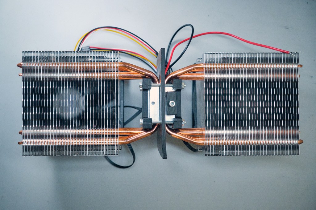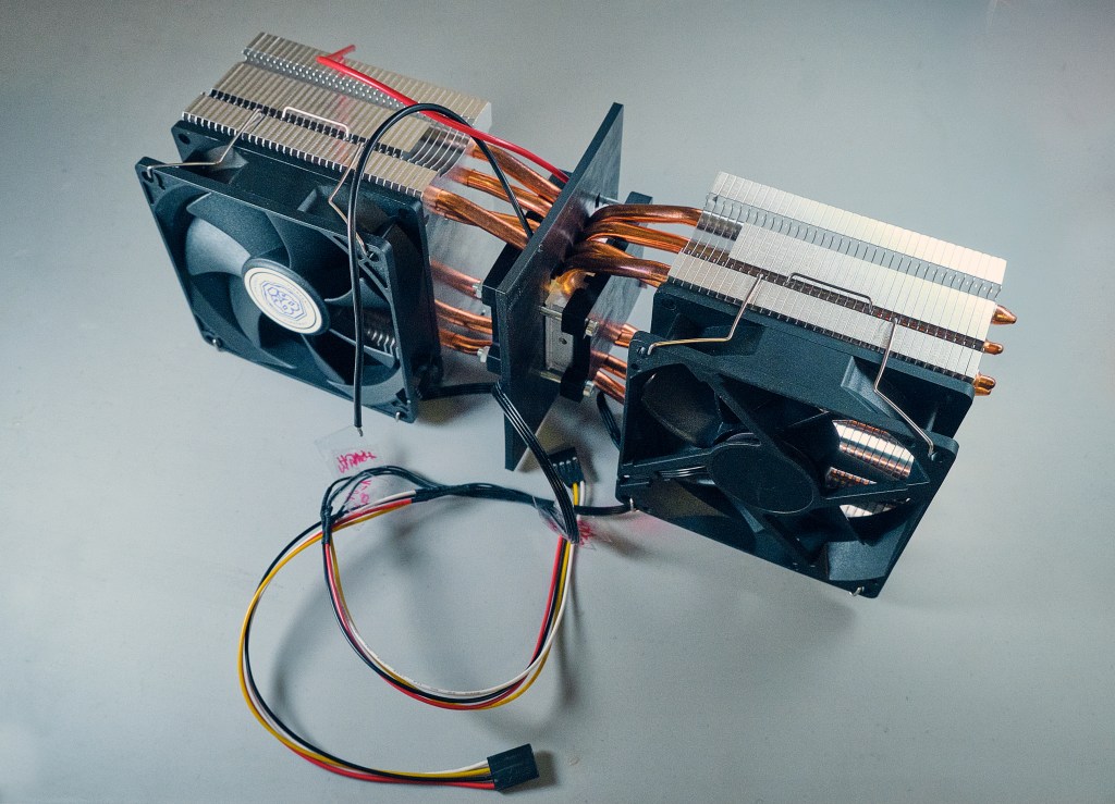 First of all, what the hell are Peltier elements? In short: black magic. In long: A fascinating piece of technology – it usually comes in the form of a little flat white square with two wires – that converts electrical power into a temperature gradient. Meaning that you apply a voltage across the two wires and one side of the Peltier gets hot, the other gets cold. Another way of thinking about it is that it transports heat from one side to the other. And all of that without a single moving part!