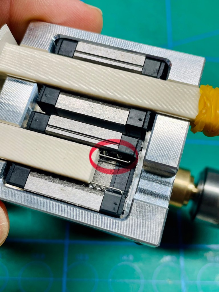 When you take carriages off linear guides, always have a dummy rail ready to insert! Those balls have a real tendency to come out and they are a true pain to get back in. When it happens, using grease as a „glue“ to keep them from immediately falling out again has worked well. I lost some on the carpet when I accidentally slid the tailstock off too far. I had printed dummy rails to prevent it but slipped when dismounting the tailstock. I found four of them and managed to put them back in, phew. I‘m glad it happened on the tailstock and not on the carriage assembly which is used constantly.