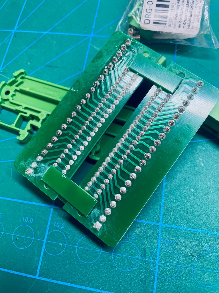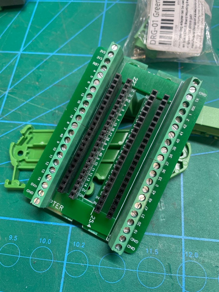 To get the ESP32 onto the DIN rail I needed a breakout board and ordered the first hit for „ESP32 breakout board“ on Ali. The punishment for this sloppy planning was the realization that the breakout board and my ESP32 were incompatible: I had ordered a 38 pin breakout board, while the ESP32 has 44 pins. Ugh. Alright, well deserved. I searched for a 44-pin variant and waited for its arrival. I present to you my next punishment: